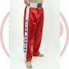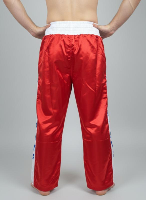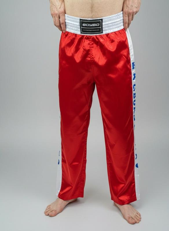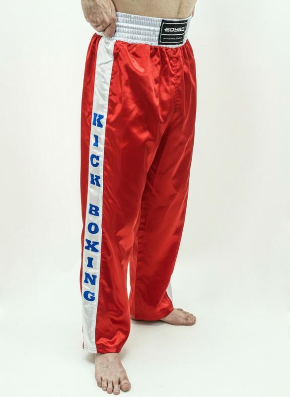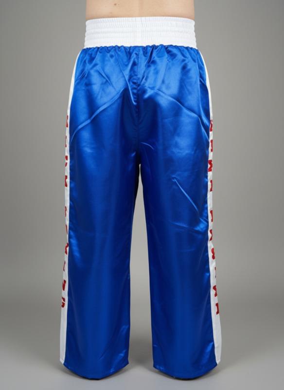Брюки для кикбоксинга Специализированная экипировка для спортсменов, занимающихся полу‑ и полноконтактным кикбоксингом. Брюки подходят как для регулярных тренировок, так и для участия в соревнованиях — обеспечивают свободу движений и соответствуют требованиям спортивных дисциплин. Ключевые особенности Предназначены для динамичных нагрузок: не сковывают движения при ударах ногами, уклонах и перемещениях. Подходят для полу‑ и полноконтактных форматов кикбоксинга — отвечают стандартам экипировки для состязаний. Материалы и технология изготовления Основной материал — 100 % полиэстер: лёгкий, прочный, устойчивый к износу. Фактура — тяжёлый атлас: приятная на ощупь, обладает умеренным блеском, сохраняет внешний вид после многократных стирок. Дизайн нанесён методом сублимации: рисунок не выцветает, не трескается и не отслаивается даже при интенсивных нагрузках и частой стирке. Конструктивные преимущества Свободный крой — обеспечивает амплитуду движений, необходимую для техники кикбоксинга. Прочная строчка и усиленные швы — выдерживают резкие рывки и натяжение при активных действиях. Эластичный пояс или регулируемые элементы (в зависимости от модели) — надёжная фиксация на талии, отсутствие сползания во время тренировки. Размерная сетка Брюки представлены в размерах, соотнесённых с ростом ребёнка. Это позволяет подобрать модель, которая: не будет слишком длинной или короткой; обеспечит комфортную посадку по фигуре; не создаст избыточного объёма, мешающего движениям. Преимущества в эксплуатации Быстро сохнут — удобно для частых тренировок. Не мнутся — сохраняют аккуратный внешний вид. Простота ухода — допускаются машинная стирка и стандартная сушка. Брюки для кикбоксинга — практичный и функциональный элемент экипировки, который сочетает качество материалов, продуманный дизайн и соответствие спортивным требованиям