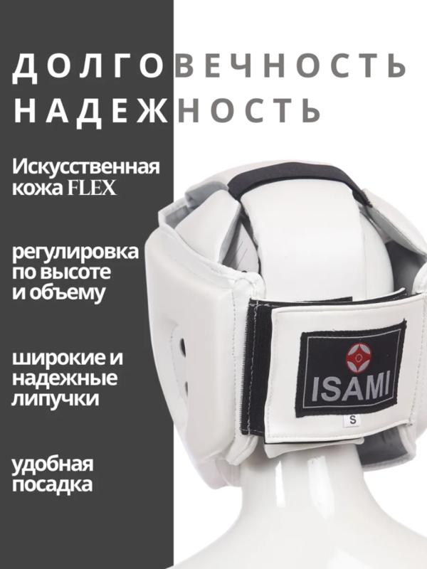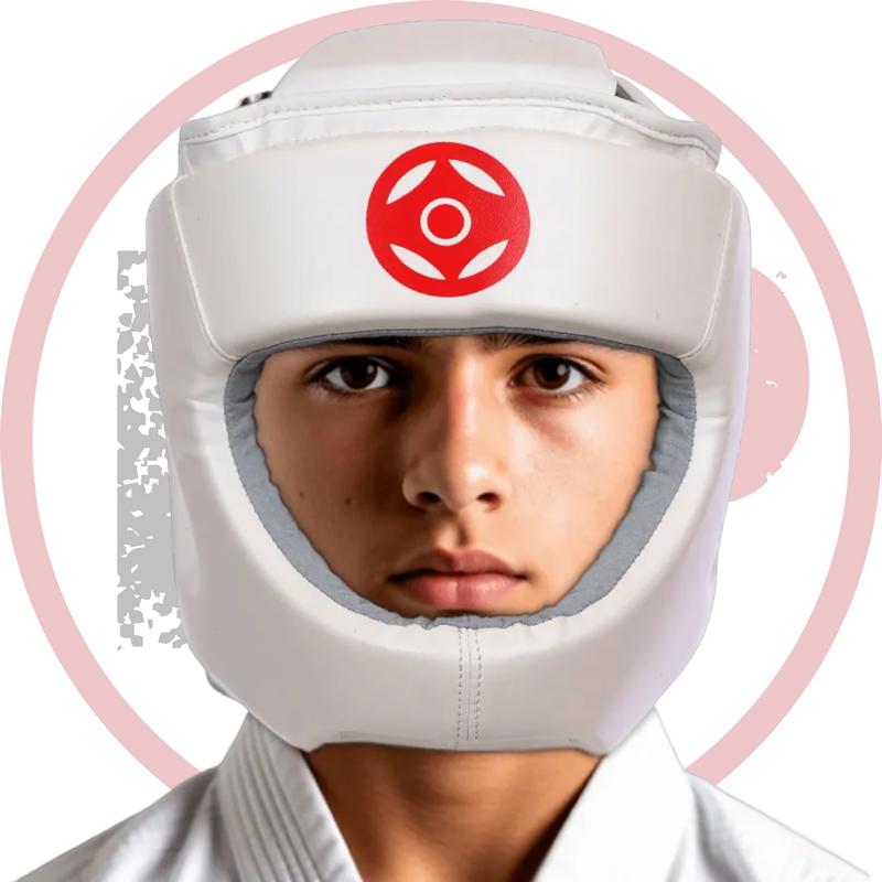 Открытый шлем с защитой подбородка для карате кекусинкай Isami. Шлем Isami — надёжная защита для спортсменов, практикующих карате Кёкусинкай, кудо, тхэквондо, ММА и другие единоборства. Модель сочетает безопасность, комфорт и эргономику, подходит для регулярных тренировок, спаррингов и аттестаций. Основные характеристики Конструкция Открытая форма обеспечивает максимальный обзор — критически важный элемент техники Кёкусинкай. Лёгкий корпус не сковывает движения, позволяя сосредоточиться на отработке приёмов. Материалы Внешний слой: прочный белый кожзам, устойчивый к истиранию и ударам. Внутренняя часть: мягкий гипоаллергенный текстиль с влагоотводящими свойствами. Амортизирующий налобник: снижает давление на кожу, предотвращает натирание при длительном использовании. Система фиксации Затылочная зона: регулируемые липучки для точной подгонки по размеру (подходит для детей и взрослых). Подбородок защищен перегородкой Дизайн На передней панели — красный логотип «Канку» (Kyokushin), символизирующий стиль Кёкусинкай. Лаконичный внешний вид соответствует традициям единоборств. Преимущества Универсальность. Подходит для разных возрастных групп и направлений боевых искусств. Комфорт. Вентилируемые материалы исключают перегрев, а анатомическая форма равномерно распределяет нагрузку. Безопасность. Конструкция защищает лоб, виски и верхнюю часть головы от ударов. Долговечность. Износостойкие материалы и усиленные крепления выдерживают интенсивные нагрузки. Простота использования. Быстрая регулировка позволяет самостоятельно надевать и снимать шлем. Область применения Тренировки по карате Кёкусинкай и смежным дисциплинам. Спарринги и отработка контактных техник. Аттестации и соревнования (при соответствии регламенту). Шлем Isami — это баланс традиций и современных технологий, обеспечивающий надёжную защиту и свободу движений. Идеален для тех, кто ценит качество, безопасность и аутентичный дизайн.