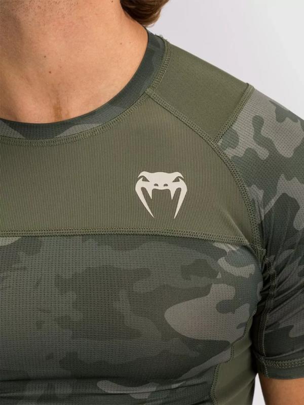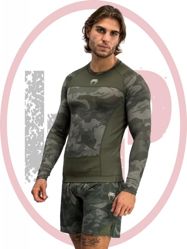 - Стильный дизайн — армейский камуфляж, длинный рукав для защиты предплечий и фирменная отделка Venum.