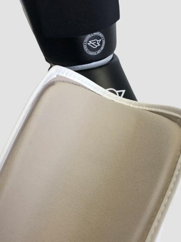 Основную защиту обеспечивает трёхслойный вкладыш из полимерной пены, который эффективно поглощает удары и распределяет нагрузку по всей поверхности. Особое внимание уделено защите большеберцовой кости — в этой зоне установлена дополнительная накладка, увеличивающая общую толщину до 28 мм, что делает защиту одной из самых надёжных в своём классе.